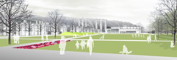 Die Idee mit einem großzügigen Stadtpark beide Ortsteile, das bestehende Ortszentrum sowie die südlichen und nördlichen Landschaftsbereiche miteinander zu verknüpfen ist sehr überzeugend gelungen. Das gilt vor allem für die intelligente Lösung im südlichen Bereich, die die Verbindungen kreuzungsfrei vorschlägt. Die Gestaltung des zentralen Stadtparks mit Rasenpult, Kastanienhaine und Esplanade ist sehr ansprechend und verspricht eine hohe Aufenthaltsqualität. Ähnliches kann man für den großzügigen Bereich des nach Norden führenden Teils des Stadtparkes sagen. Dasselbe gilt für die Vorschläge südlich der S-Bahn und im Bereich des nördlichen Gewerbegebietes...