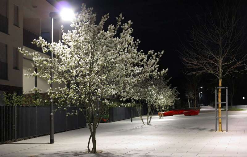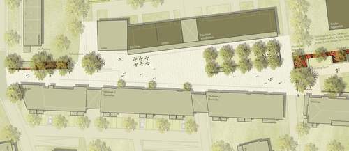nutzten Südzeile sind als Filter kleinkronige Bäume mit Sitzbänken platziert. Der vorhandene Baumbe-