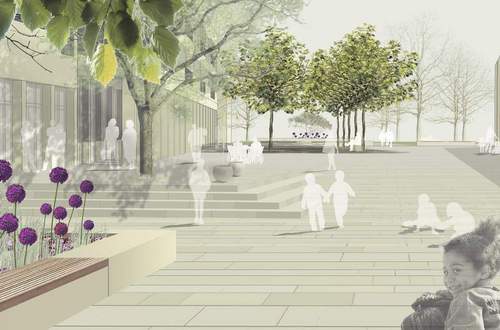 orderungen. Der vorhandene Höhenverlauf wird in der Platzfläche geschickt aufgenommen. Im west-
